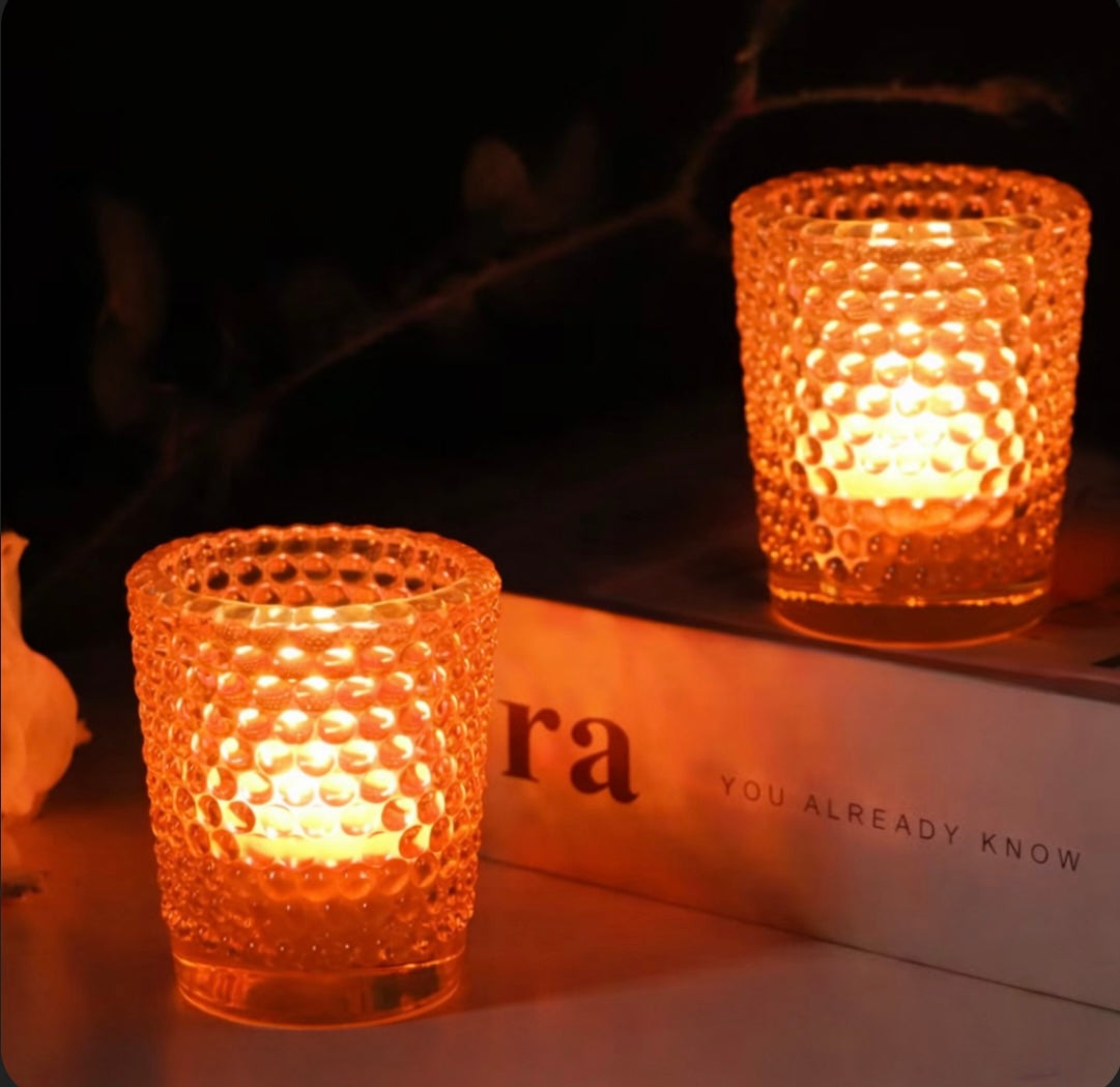 Light Orange Hobnail Glass Votive Candle Holders – Set of 2 (Includes Tea Lights)
