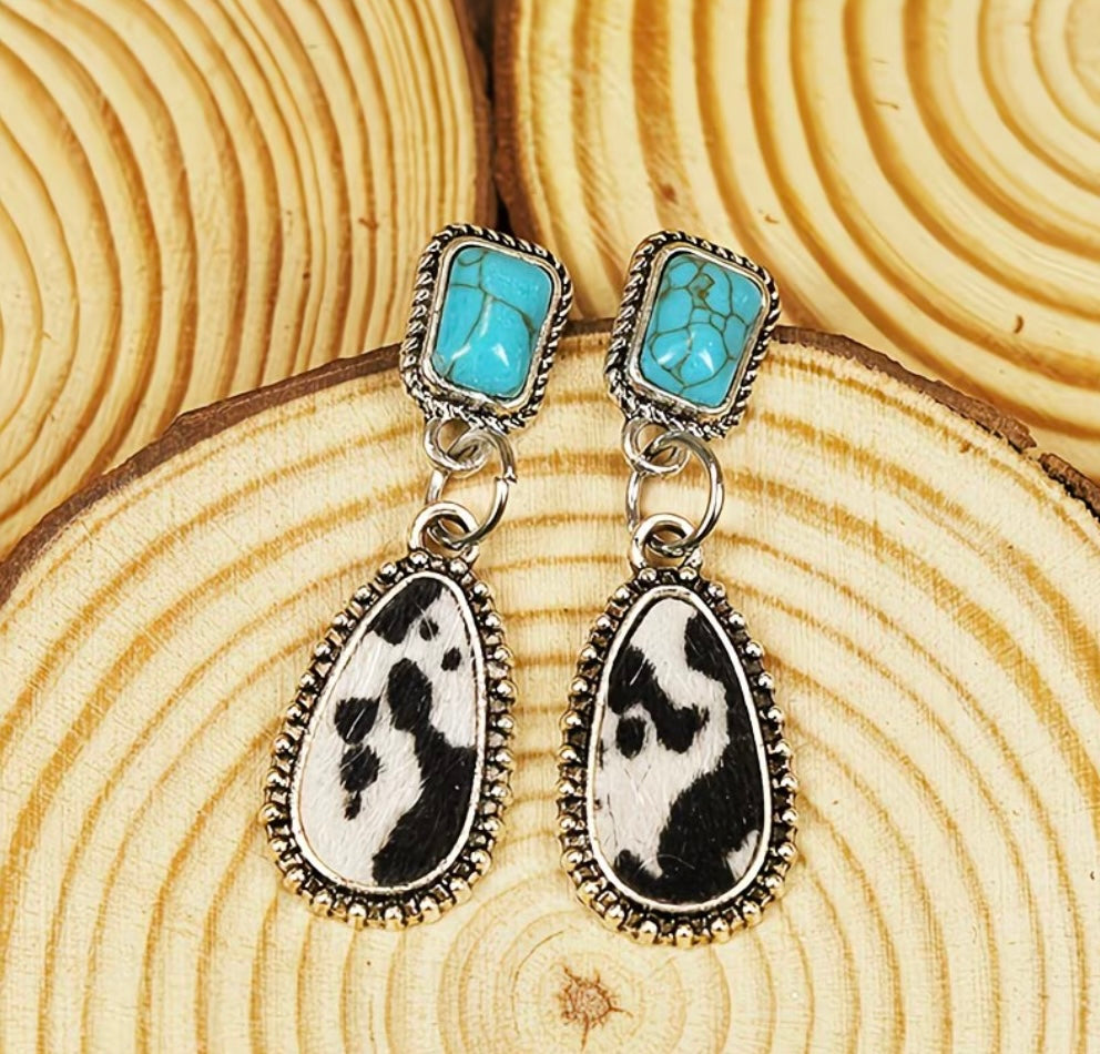 Cow Print Alloy Teardrop for Women